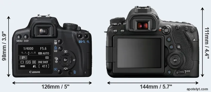 The above size and weight comparisons are to some extent incomplete since they do not consider the interchangeable lenses that both of these cameras require. A larger imaging sensor (as in the 6D Mark II) will tend to go along with bigger and heavier lenses, while more compact options are available for the smaller-sensor camera (1000D). You can compare the optics available in the Canon EF Lens Catalog.