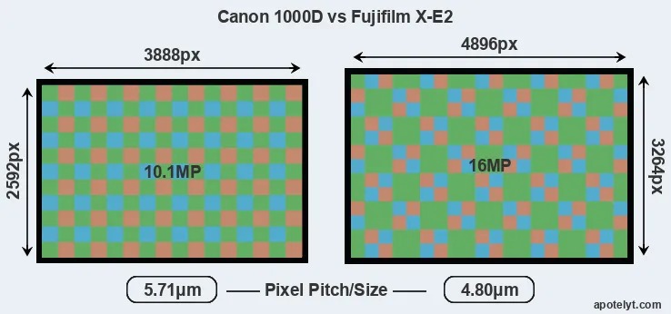 | Sensor Specs | Canon 1000D | Fujifilm X-E2 |