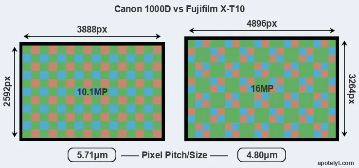| Sensor Specs | Canon 1000D | Fujifilm X-T10 |