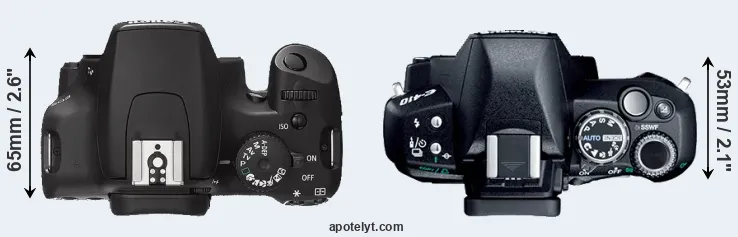 | 4. | Canon 450D | APS-C | 12.2 | 4272 | 2848 | none | 21.9 | 10.8 | 692 | 61 | |