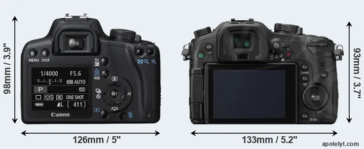 Going beyond this snapshot of core features and characteristics, what are the differences between the Canon EOS 1000D and the Panasonic Lumix DMC-GH3? Which one should you buy? Read on to find out how these two cameras compare with respect to their body size, their imaging sensors, their shooting features, their input-output connections, and their reception by expert reviewers.