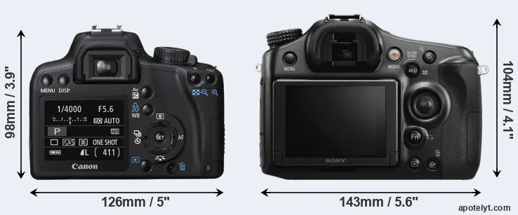 Going beyond this snapshot of core features and characteristics, what are the differences between the Canon EOS 1000D and the Sony Alpha SLT-A68? Which one should you buy? Read on to find out how these two cameras compare with respect to their body size, their imaging sensors, their shooting features, their input-output connections, and their reception by expert reviewers.