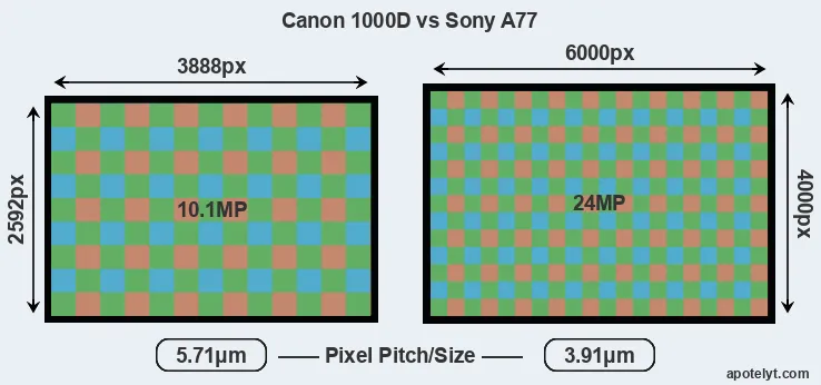 | Sensor Specs | Canon 1000D | Sony A77 |
