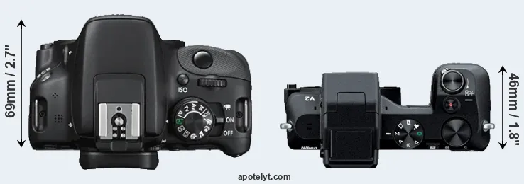 | Body Specs | Canon 100D | Nikon 1 V2 |