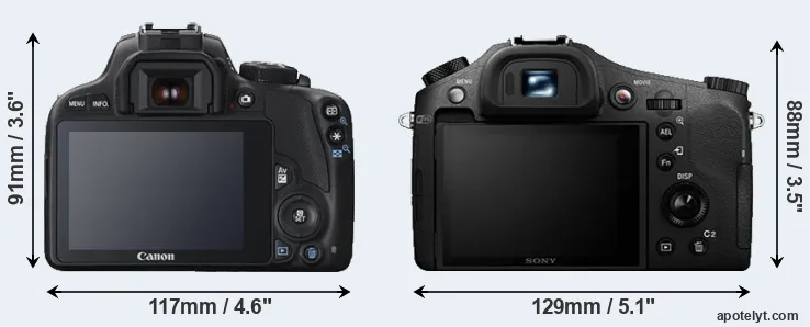 Going beyond this snapshot of core features and characteristics, what are the differences between the Canon EOS 100D and the Sony Cyber-shot DSC-RX10 II? Which one should you buy? Read on to find out how these two cameras compare with respect to their body size, their imaging sensors, their shooting features, their input-output connections, and their reception by expert reviewers.