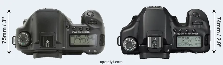 | 5. | Canon 30D | 144 mm | 106 mm | 74 mm | 785 g | 750 | n | Feb 2006 | US$ 1 399 | ebay.com | |