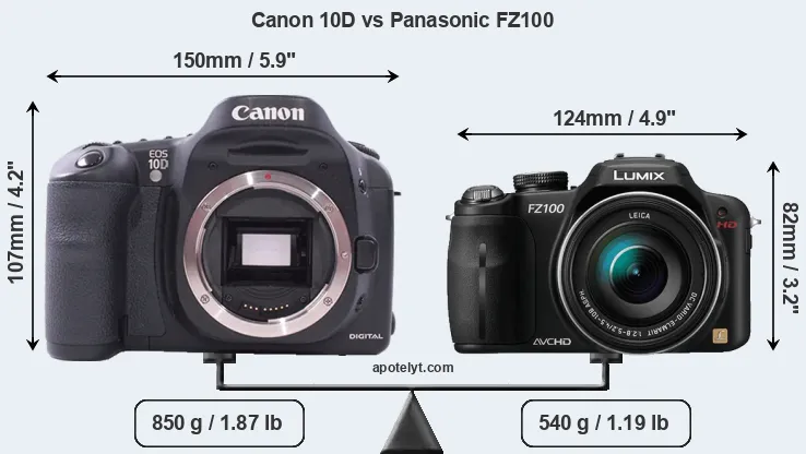 | Body Specs | Canon 10D | Panasonic FZ100 |