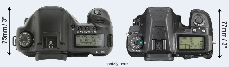 | 16. | Pentax KP | 132 mm | 101 mm | 76 mm | 703 g | 390 | Y | Jan 2017 | US$ 1 099 | ebay.com | |