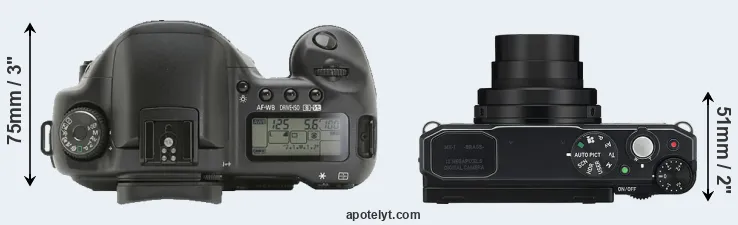 | 5. | Canon 30D | 144 mm | 106 mm | 74 mm | 785 g | 750 | n | Feb 2006 | US$ 1 399 | ebay.com | |
