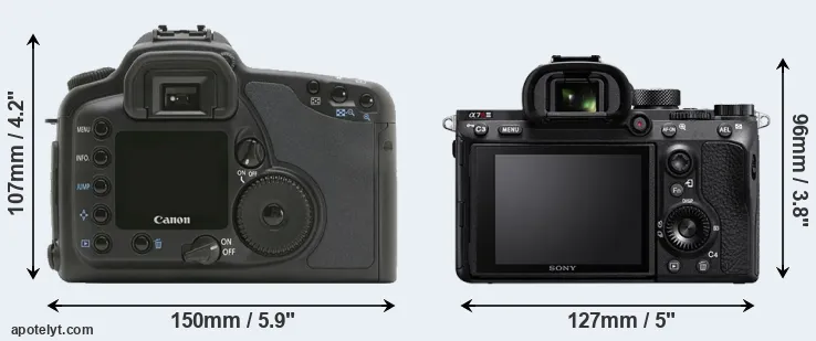 The Canon EOS 10D and the Sony Alpha A7R III are two enthusiast cameras that were revealed to the public, respectively, in February 2003 and October 2017. The 10D is a DSLR, while the A7R III is a mirrorless interchangeable lens camera. The cameras are based on an APS-C (10D) and a full frame (A7R III) sensor. The Canon has a resolution of 6.3 megapixels, whereas the Sony provides 42.2 MP.