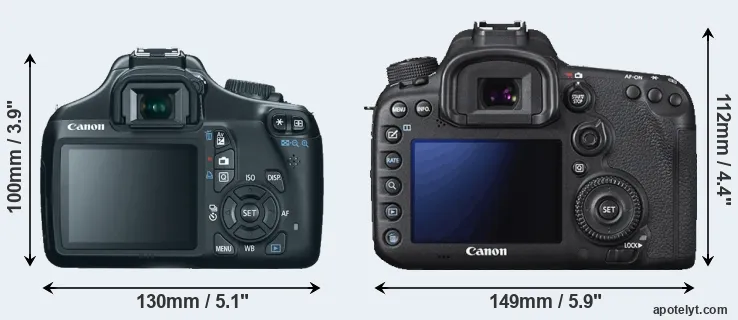 The physical size and weight of the Canon 1100D and the Canon 7D II are illustrated in the side-by-side display below. The two cameras are presented according to their relative size. Three consecutive perspectives from the front, the top, and the back are available. All width, height and depth dimensions are rounded to the nearest millimeter.