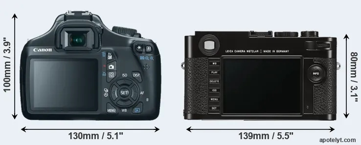 Going beyond this snapshot of core features and characteristics, what are the differences between the Canon EOS 1100D and the Leica M (Typ 262)? Which one should you buy? Read on to find out how these two cameras compare with respect to their body size, their imaging sensors, their shooting features, their input-output connections, and their reception by expert reviewers.