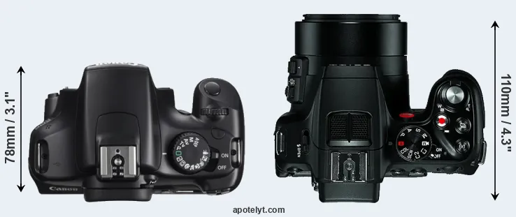 The above size and weight comparisons are to some extent incomplete and possibly misleading, as the V-LUX 4 has a lens built in, whereas the 1100D is an interchangeable lens camera that requires a separate lens. Attaching the latter will add extra weight and bulk to the setup. You can compare the optics available for the 1100D and their specifications in the Canon EF Lens Catalog.