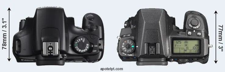 | 17. | Pentax KP | 132 mm | 101 mm | 76 mm | 703 g | 390 | Y | Jan 2017 | US$ 1 099 | ebay.com | |