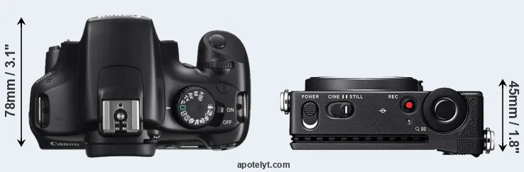 | 8. | Canon 1200D | 130 mm | 100 mm | 78 mm | 480 g | 500 | n | Feb 2014 | US$ 449 | ebay.com | |
