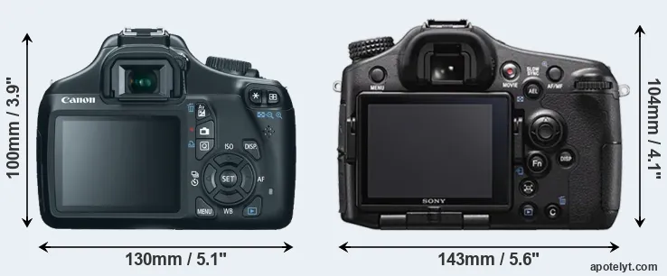 Going beyond this snapshot of core features and characteristics, what are the differences between the Canon EOS 1100D and the Sony Alpha SLT-A77 II? Which one should you buy? Read on to find out how these two cameras compare with respect to their body size, their imaging sensors, their shooting features, their input-output connections, and their reception by expert reviewers.