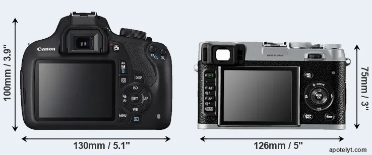The above size and weight comparisons are to some extent incomplete and possibly misleading, as the X100 has a lens built in, whereas the 1200D is an interchangeable lens camera that requires a separate lens. Attaching the latter will add extra weight and bulk to the setup. You can compare the optics available for the 1200D and their specifications in the Canon EF Lens Catalog.