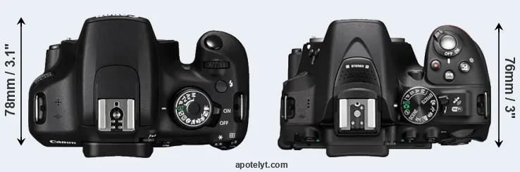 | 1. | Canon 1200D | 130 mm | 100 mm | 78 mm | 480 g | 500 | n | Feb 2014 | US$ 449 | ebay.com | |