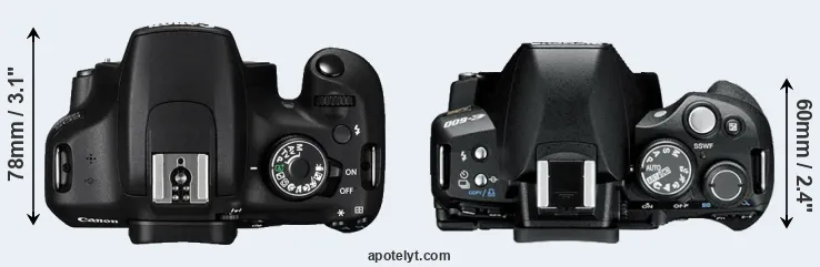 | 1. | Canon 1200D | 130 mm | 100 mm | 78 mm | 480 g | 500 | n | Feb 2014 | US$ 449 | ebay.com | |
