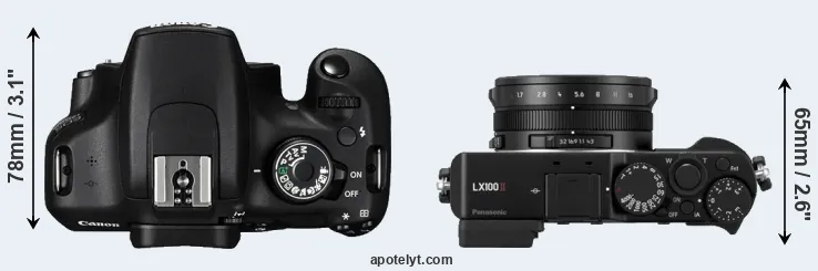 | Body Specs | Canon 1200D | Panasonic LX100 II |