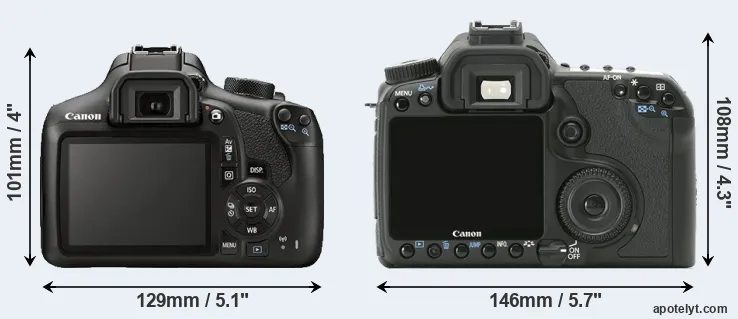 | 1. | Canon 1300D | 129 mm | 101 mm | 78 mm | 485 g | 500 | n | Mar 2016 | US$ 449 | ebay.com | |