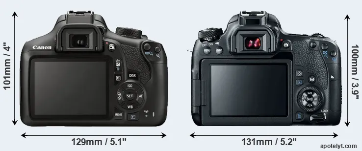| 5. | Canon 750D | 132 mm | 101 mm | 78 mm | 555 g | 440 | n | Feb 2015 | US$ 749 | ebay.com | |
