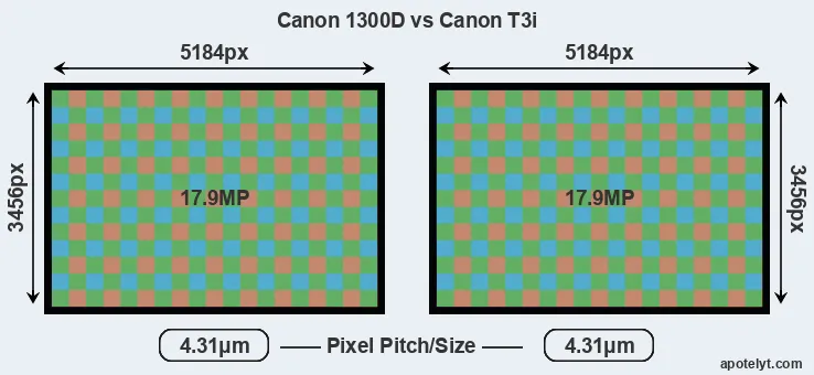 | Sensor Specs | Canon 1300D | Canon T3i |