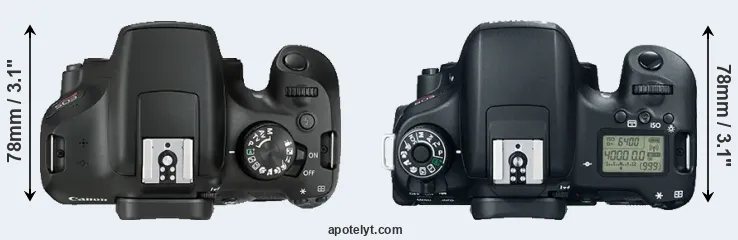 | 2. | Canon T6s | 132 mm | 101 mm | 78 mm | 565 g | 440 | n | Feb 2015 | US$ 649 | ebay.com | |