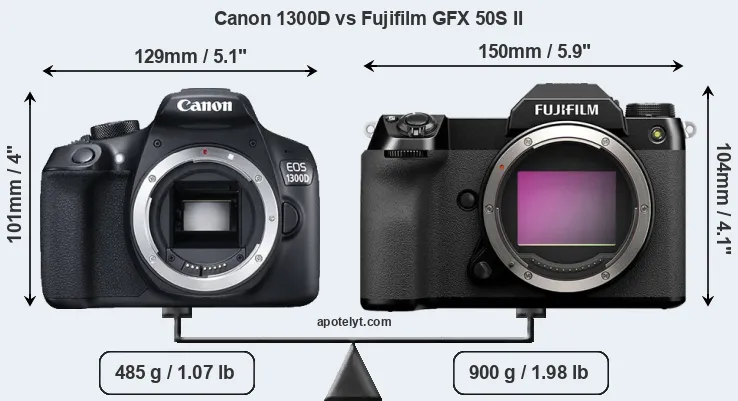 Specifications: Canon 1300D vs Fujifilm GFX 50S II
