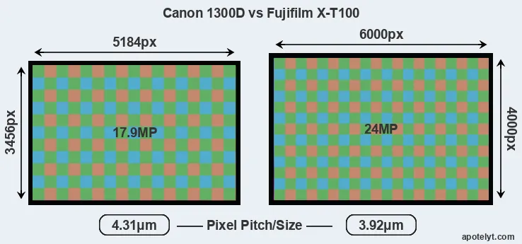 | Sensor Specs | Canon 1300D | Fujifilm X-T100 |