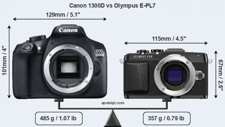 | Body Specs | Canon 1300D | Olympus E-PL7 |