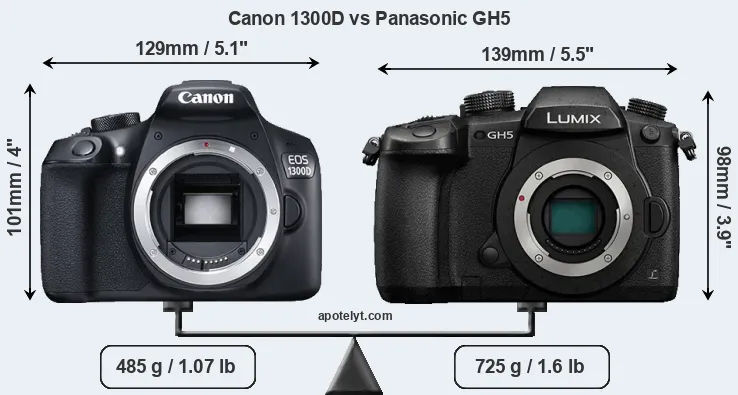 | Body Specs | Canon 1300D | Panasonic GH5 |