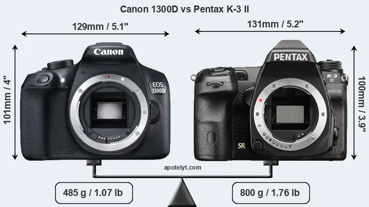 | Body Specs | Canon 1300D | Pentax K-3 II |