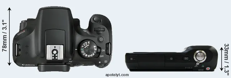 | 7. | Canon 1200D | 130 mm | 100 mm | 78 mm | 480 g | 500 | n | Feb 2014 | US$ 449 | ebay.com | |