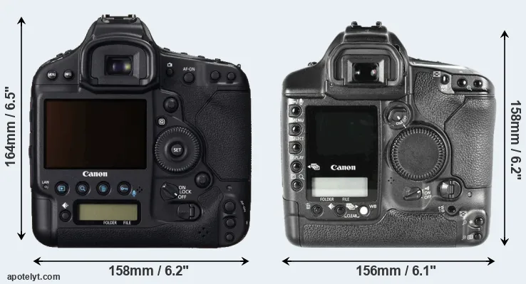 | 5. | Canon 1Ds | 156 mm | 158 mm | 80 mm | 1265 g | 600 | Y | Sep 2002 | US$ 8 999 | ebay.com | |