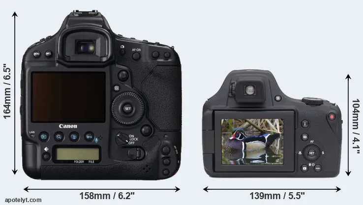 The above size and weight comparisons are to some extent incomplete and possibly misleading, as the AZ901 has a lens built in, whereas the 1DC is an interchangeable lens camera that requires a separate lens. Attaching the latter will add extra weight and bulk to the setup. You can compare the optics available for the 1DC and their specifications in the Canon EF Lens Catalog.