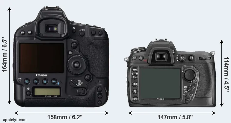The above size and weight comparisons are to some extent incomplete since they do not consider the interchangeable lenses that both of these cameras require. A larger imaging sensor will tend to go along with bigger and heavier lenses, although exceptions exist. You can compare the optics available for the two cameras in the Canon EF Lens Catalog (1DC) and the Nikon Lens Catalog (D300).