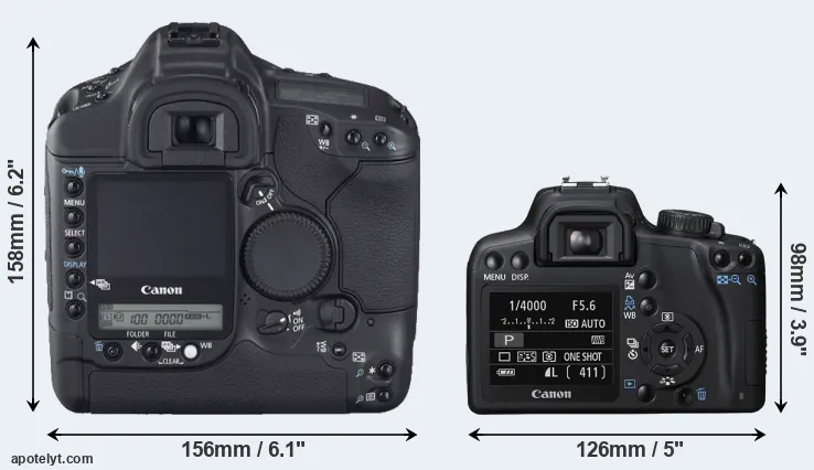 | 5. | Canon 1Ds Mark II | 156 mm | 158 mm | 80 mm | 1215 g | 1200 | Y | Sep 2004 | US$ 7 999 | ebay.com | |