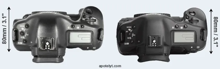 | 8. | Canon 1Ds Mark II | 156 mm | 158 mm | 80 mm | 1215 g | 1200 | Y | Sep 2004 | US$ 7 999 | ebay.com | |
