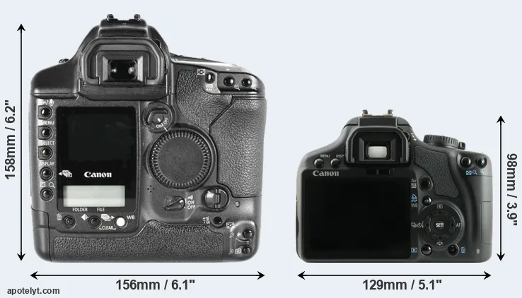 | 7. | Canon 1Ds | 156 mm | 158 mm | 80 mm | 1265 g | 600 | Y | Sep 2002 | US$ 8 999 | ebay.com | |