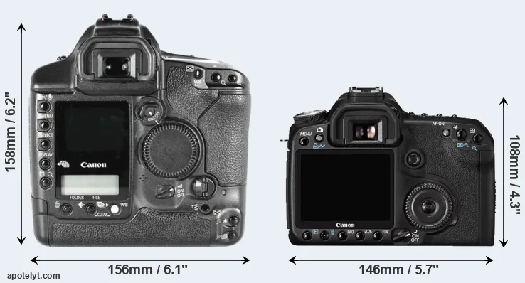 | 7. | Canon 1Ds | 156 mm | 158 mm | 80 mm | 1265 g | 600 | Y | Sep 2002 | US$ 8 999 | ebay.com | |