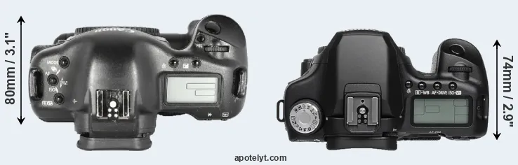 | 8. | Canon 1Ds Mark II | 156 mm | 158 mm | 80 mm | 1215 g | 1200 | Y | Sep 2004 | US$ 7 999 | ebay.com | |