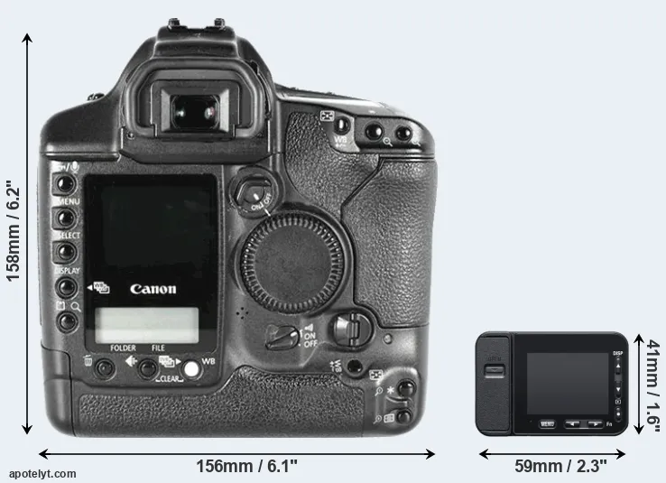 | 7. | Canon 1Ds | 156 mm | 158 mm | 80 mm | 1265 g | 600 | Y | Sep 2002 | US$ 8 999 | ebay.com | |