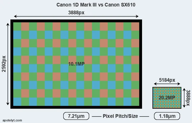| Sensor Specs | Canon 1D Mark III | Canon SX610 |