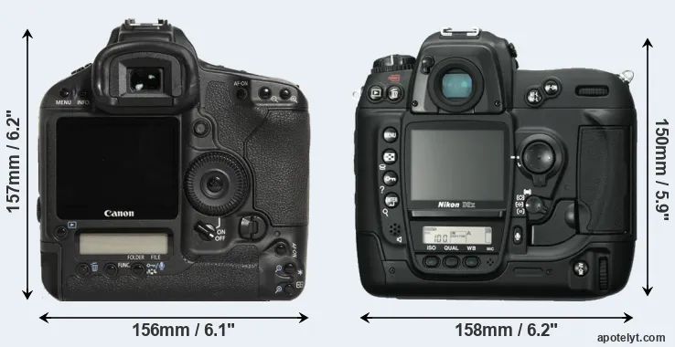 | 5. | Canon 1Ds | 156 mm | 158 mm | 80 mm | 1265 g | 600 | Y | Sep 2002 | EUR 8 999 | ebay.com | |