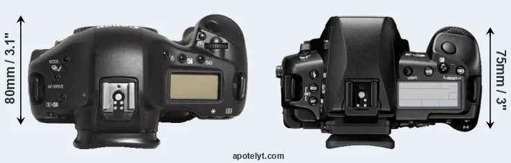 | 6. | Canon 1Ds | 156 mm | 158 mm | 80 mm | 1265 g | 600 | Y | Sep 2002 | US$ 8 999 | ebay.com | |