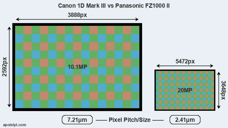 | Sensor Specs | Canon 1D Mark III | Panasonic FZ1000 II |