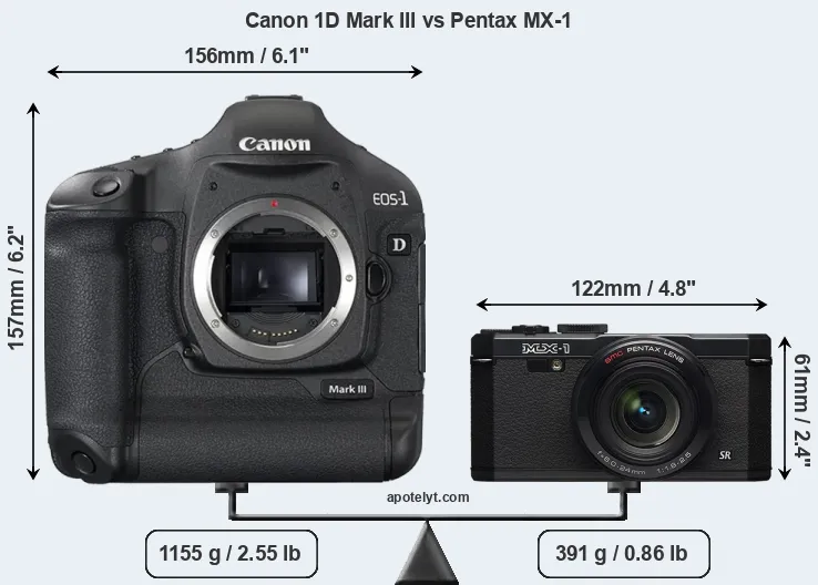 Size Canon 1D Mark III vs Pentax MX-1