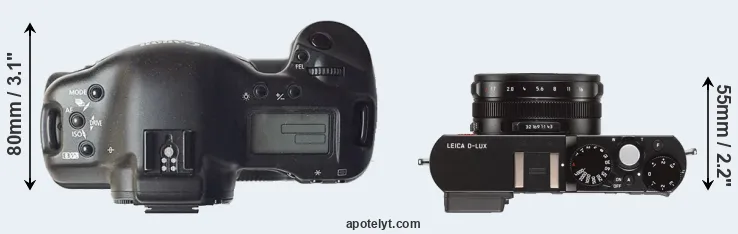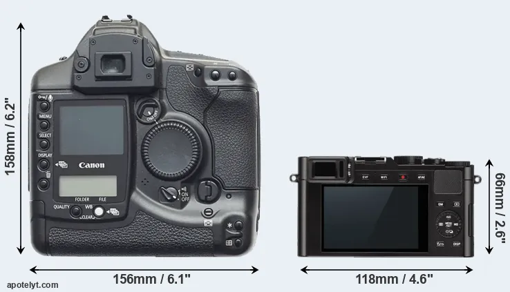 Going beyond this snapshot of core features and characteristics, what are the differences between the Canon EOS-1D and the Leica D-LUX (Typ 109)? Which one should you buy? Read on to find out how these two cameras compare with respect to their body size, their imaging sensors, their shooting features, their input-output connections, and their reception by expert reviewers.