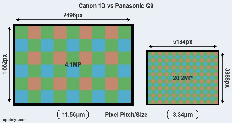 | Sensor Specs | Canon 1D | Panasonic G9 |